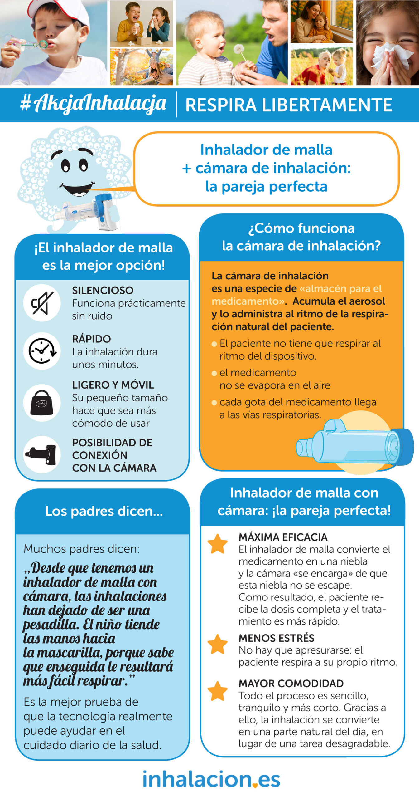 «Desde que tenemos un inhalador de malla con cámara, las inhalaciones han dejado de ser una pesadilla. El niño extiende las manos hacia la mascarilla porque sabe que enseguida le resultará más fácil respirar».