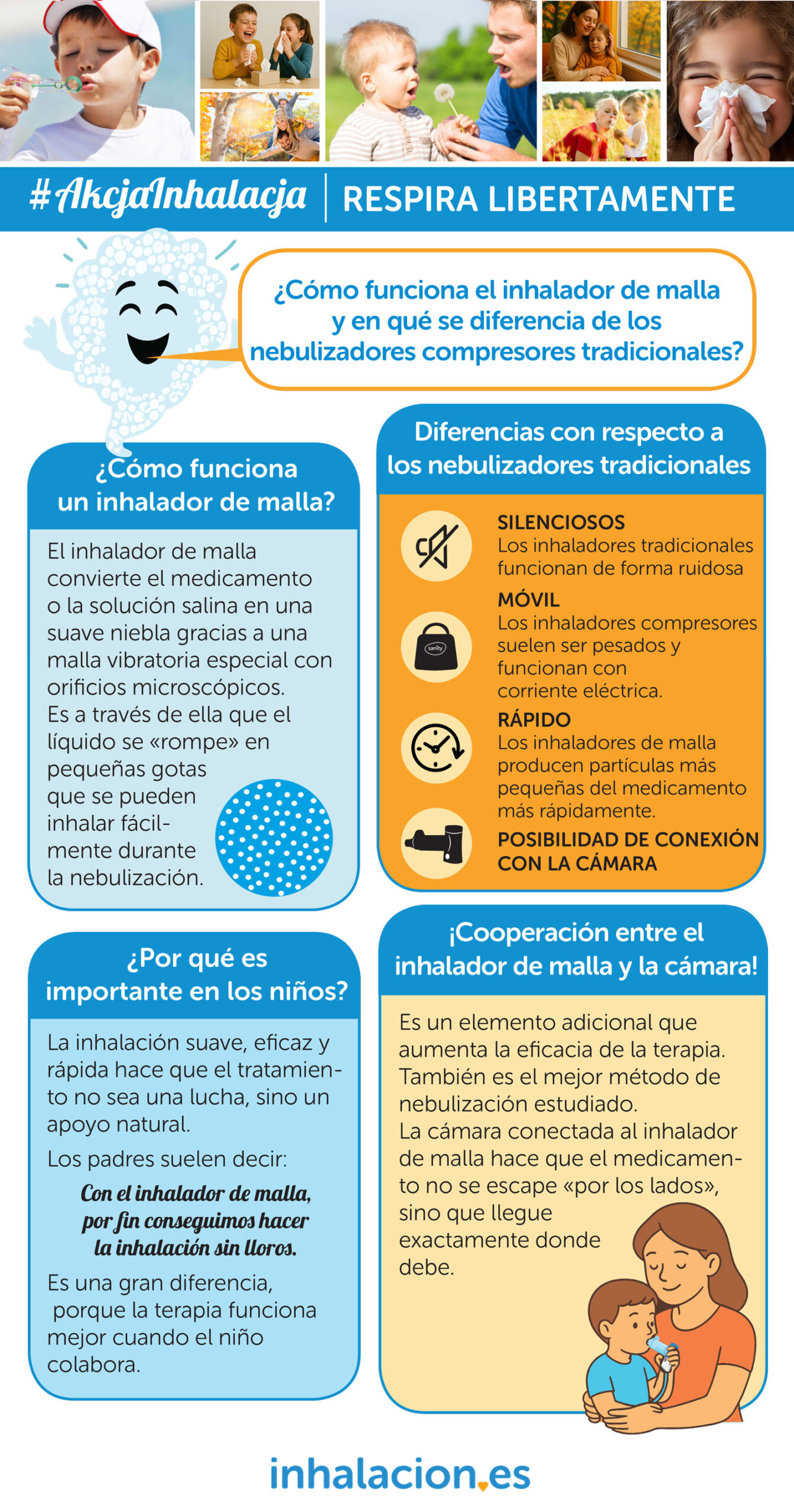 Si tu hijo padece infecciones respiratorias, seguramente ya sabes que las inhalaciones pueden hacer maravillas. Pero quizá te surja la pregunta: «¿Qué inhalador elegir? ¿El clásico que tenemos en casa desde hace años o el moderno de malla?»